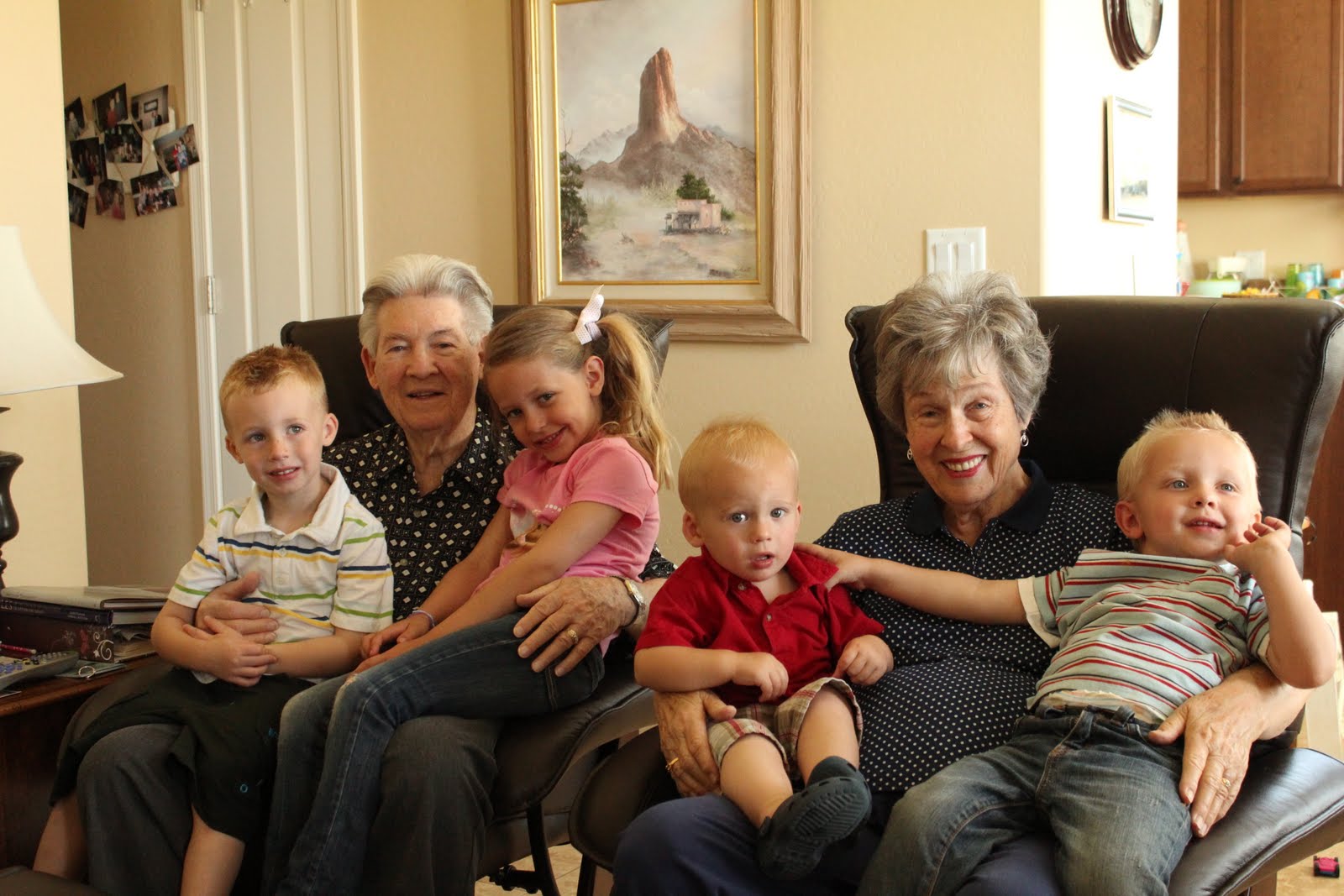 I need to catch up on some of our recent events... a couple weeks ago, Alyssa and I took our kids over to visit their great grandpa and grandma Riggs. It was so much fun to visit with them! Here are the kids with G and G Riggs.